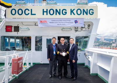 (Hong Kong, 25 July 2019) The Hong Kong Seaport Alliance (HKSPA) today welcomed OOCL HONG KONG, one of the world's largest container vessels, on its maiden call to Hong Kong at the HKSPA's facilities at Terminal 8. The vessel, together with ten other mega vessels from Orient Overseas Container Line Limited (OOCL) and COSCO SHIPPING Lines Co., Ltd (COSCO SHIPPING), has been deployed on the OCEAN Alliance's Asia-North Europe Service since late June. The inclusion of Hong Kong as a port of call in this service re-affirms the city's status as an international shipping hub and a key gateway to Mainland China.