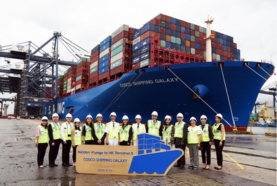 Welcoming COSCO SHIPPING GALAXY's maiden voyage to Hong Kong on 10 July, Lawrence Shum, Managing Director of COSCO-HIT Terminals (Hong Kong) Limited (CHT) also highlighted the unique offerings of the HKSPA. “We are very pleased with COSCO SHIPPING GALAXY, the largest container vessel of COSCO SHIPPING, berthing at our facility in Hong Kong. The combined facilities of HKSPA can handle up to eight mega vessels at the same time which provides the big container shipping alliances with the capacity and flexibility to include Hong Kong in their network,” said Mr Shum.